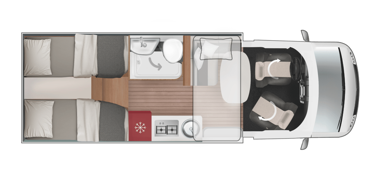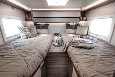 Einzel-Längsbetten im Heck - kombinierbar zur Liegewiese